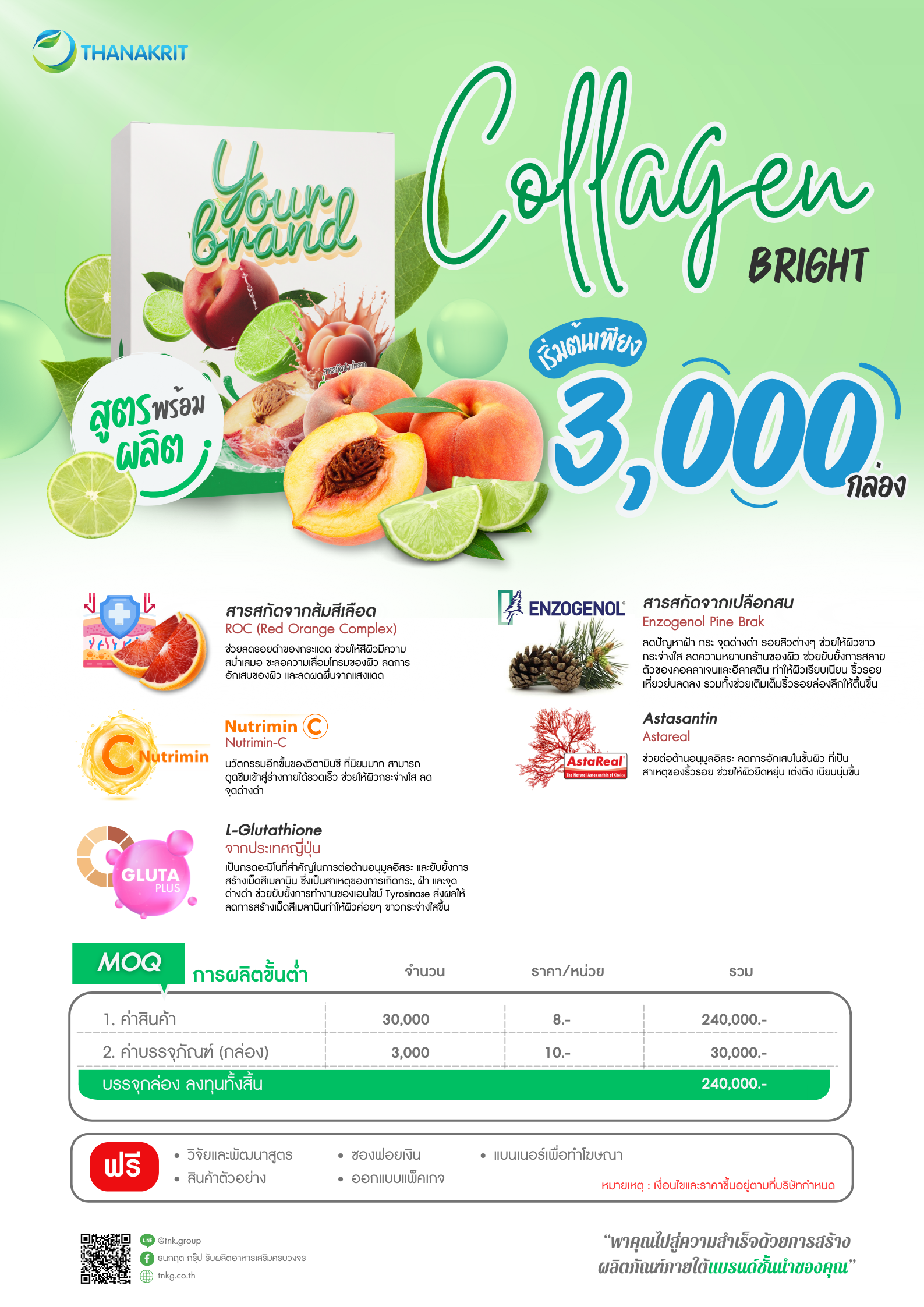 คอลลาเจนเสริมอาหารเพื่อบำรุงผิวให้กระจ่างใส เติมความชุ่มชื้นและความยืดหยุ่นให้ผิว ลดเลือนริ้วรอย จุดด่างดำ และความหมองคล้ำ พร้อมฟื้นฟูเซลล์ผิวให้แข็งแรง ผิวดูเรียบเนียน อ่อนเยาว์ และสุขภาพดีจากภายในสู่ภายนอก